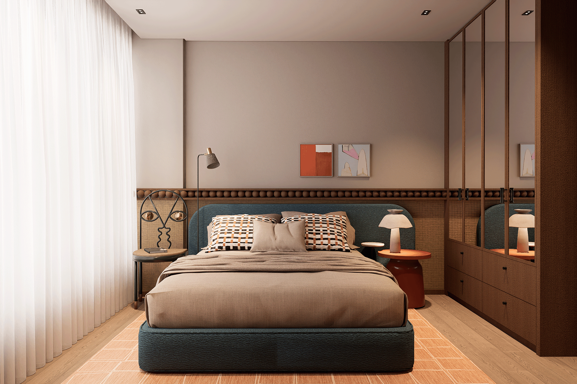 "O mural cerâmico artístico que envolve a área da piscina foi concebido exclusivamente para este espaço. À semelhança da obra de Salvador Dalí, ele subverte padrões ao explorar duas camadas de azulejos sobrepostos que, por meio de cores, texturas e recortes, evocam as características marcantes do surrealista: a influência do relevo da costa espanhola, os intensos tons de azul e suas sombras profundas."